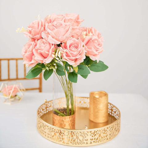 2 Bushes Light Blush Silk Rose Bouquets – Real Touch Long Stem Artificial Flowers 18"